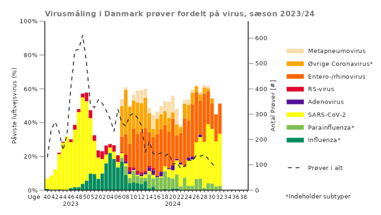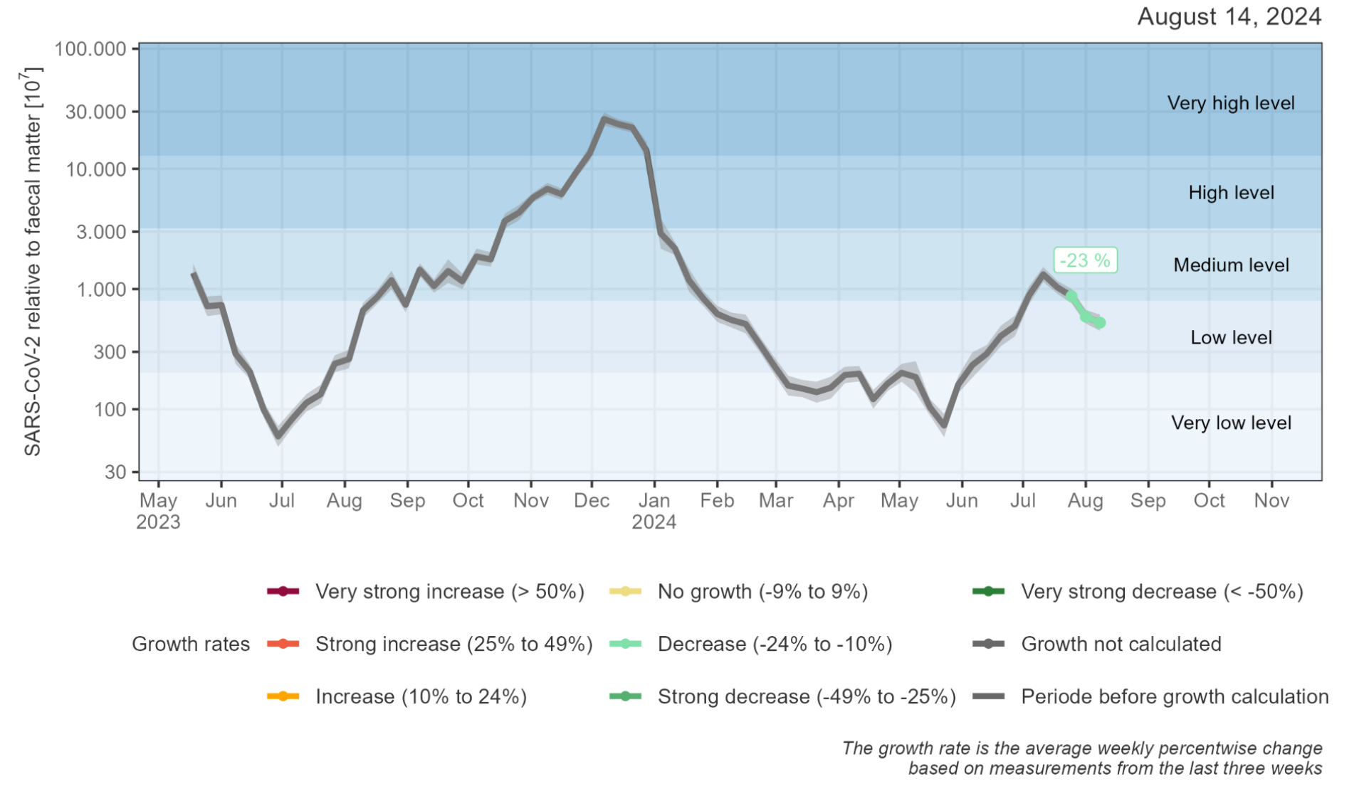 COVID activity as measured by wastewater surveillance declined, according to the latest weekly snapshot from the Statens Serum Institute. The institute says virus concentrations were lower in week 32, and coronavirus activity in Denmark is now classified as “decreasing.”
