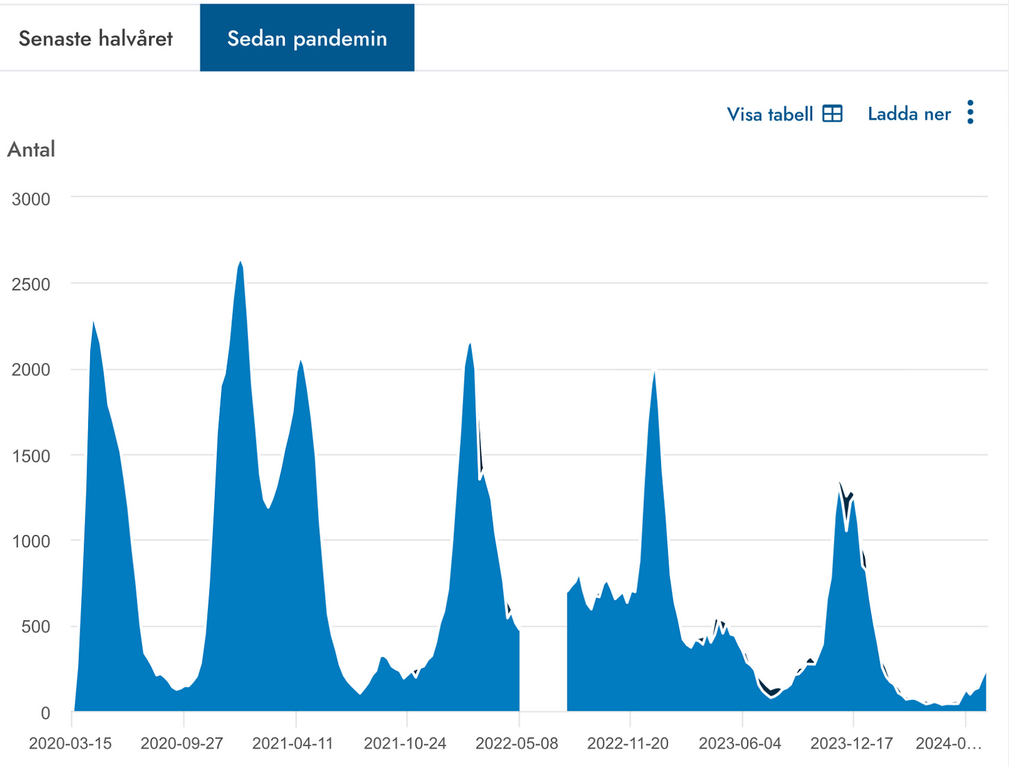 COVID activity, which has been increasing since the end of June, is expected to continue to rise, according to the Swedish Public Health Agency. It says that the number of coronavirus infections has increased by 29% week-to-week. The agency notes that the majority of cases, about 72%, are among vulnerable seniors over the age of 65. It says that with kids returning to school and people returning to work as summer vacation ends, it will only increase the infection spread. The agency adds that another factor driving case numbers are two new variants, KP.3 and KP.2.