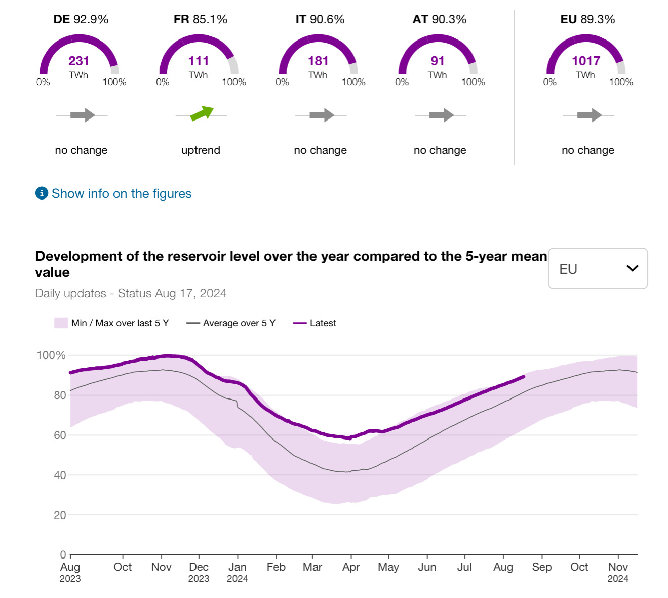 European Union gas reserves are currently sitting at 89.3%. Climate change has been a little bit of a lifesaver for the EU after Russia weaponized its energy exports in 2022 in an effort to bring Europe to its knees. An energy emergency has been headed off by two consecutive warm winters. But as always the weather is a wild card. If Europe goes into a deep freeze this winter it could be the first major test of EU energy reserves since Russia turned off the taps.