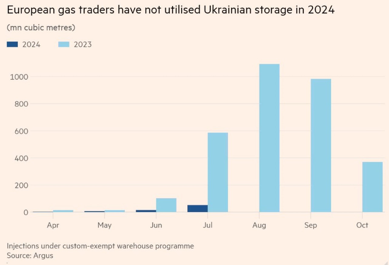 Russian attacks on Ukraine’s energy infrastructure could result in the country losing a very lucrative business. So far this year, EU companies and traders have stored just a fraction of the gas volumes in Ukraine that they have in years past. The EU has grown concerned not just about the potential for major damages as Russian missiles rain down on Ukrainian energy infrastructure but also about the potential for damages to gas transportation infrastructure.