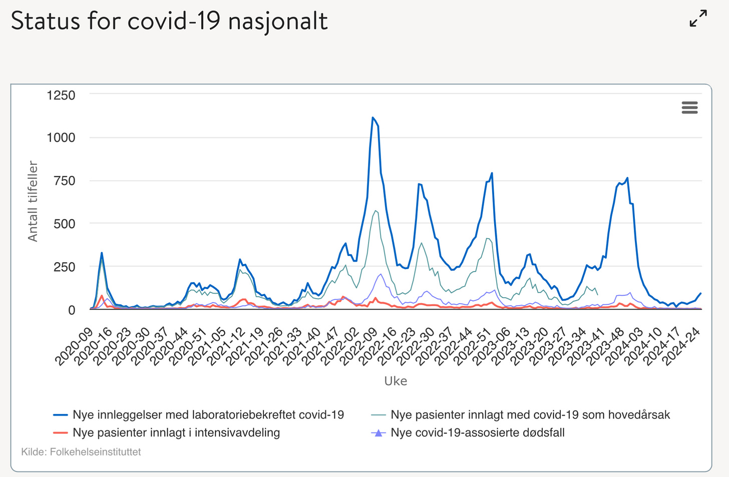 Norway registered a 12.2% positivity percentage last week, a slight decline from the previous two weeks. The institute says the KP.3 variant is dominant across the country.