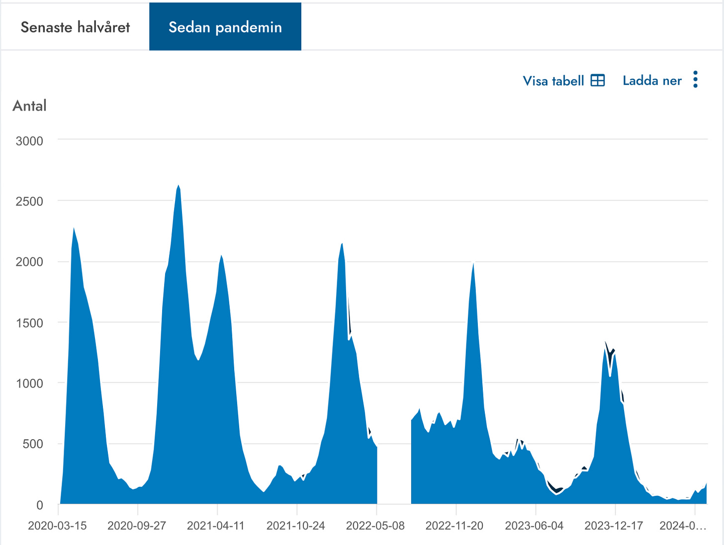In Sweden, COVID hospitalizations (212) have increased (+52), while the number of severely infected people needing intensive care (6) has edged downward (-3).