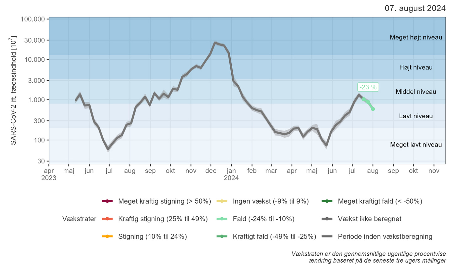 COVID activity has decreased across Denmark, according to the latest wastewater surveillance results. After weeks of increasing activity, the Statens Serum Institute says that virus concentrations in the wastewater are lower than they were the previous week. It rates the trend over the last three weeks as “decreasing” but COVID activity overall remains at a ‘medium’ level.