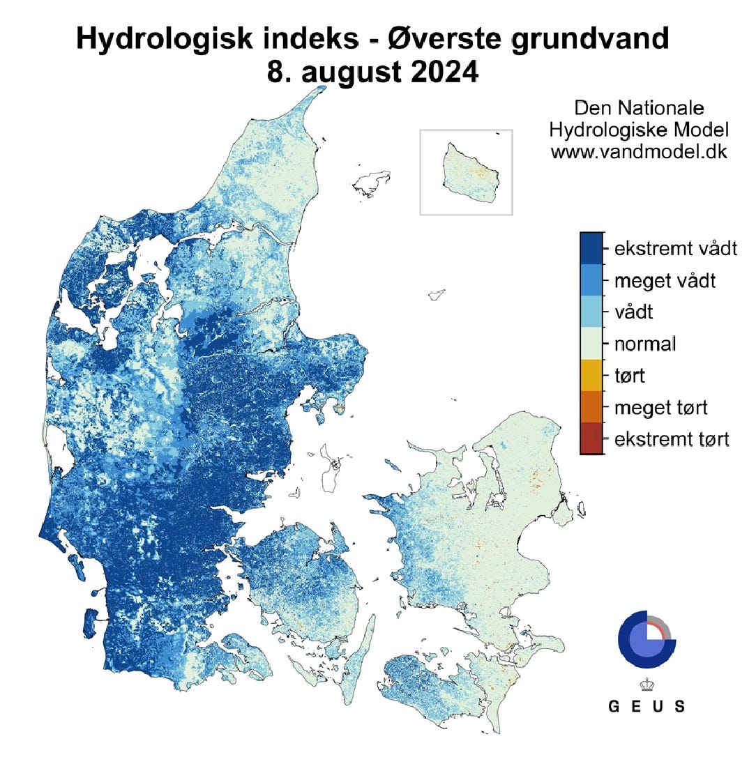 Groundwater levels are much higher than normal right now, and if something doesn’t change soon, it could mean an increased risk of flooding this fall. The Danish National Geological Survey (GEUS) calculates that groundwater levels are about 40 centimetres higher than usual for this time of year.