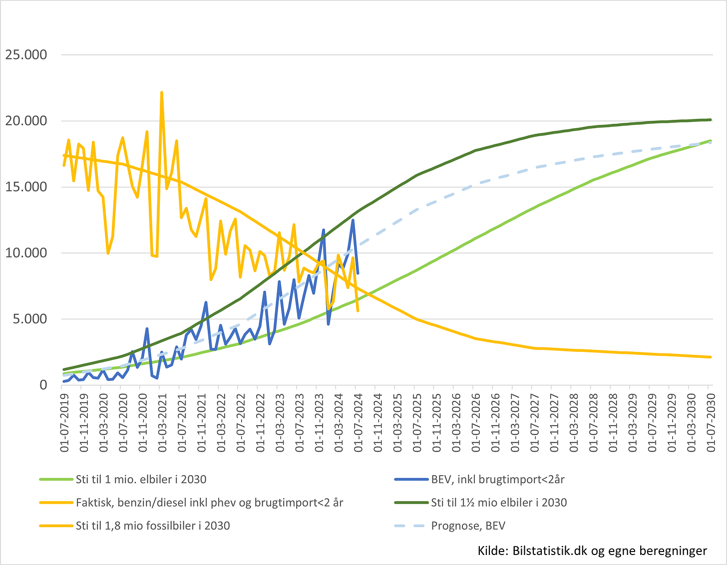 “The Danes love used electric cars. 2,543 used electric cars were less than 2 years old and are included in the figure. The stock of fossil cars has fallen by 88,000 in one year and by 9,510 in July.”
