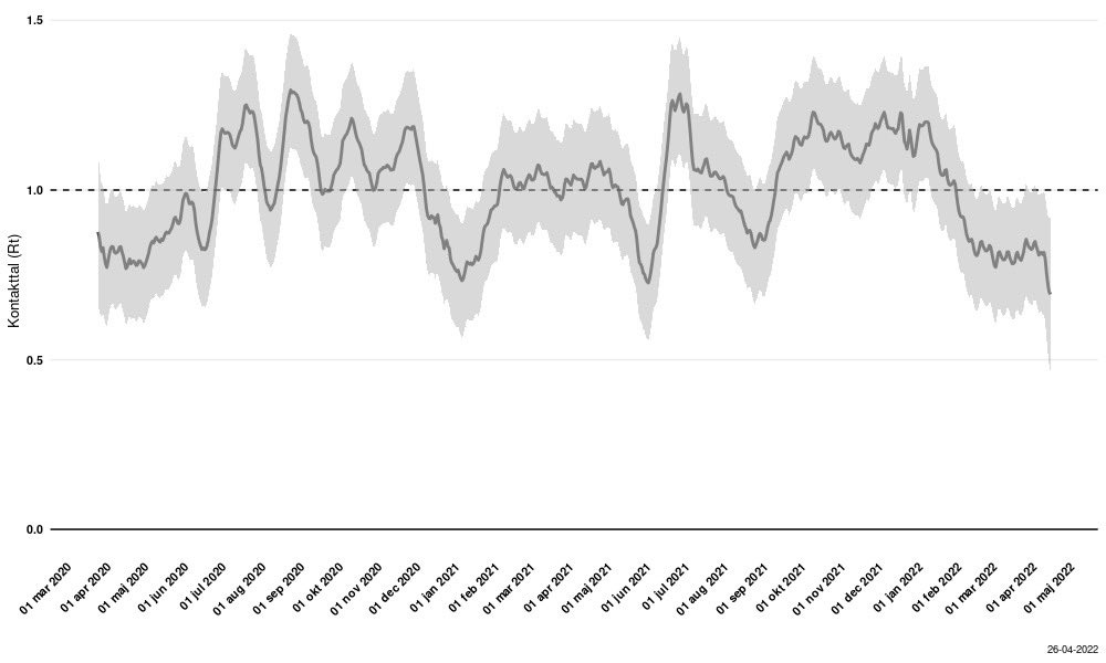 Denmark’s Health Minister Magnus Heunicke says the COVID contact number (reinfection rate or R0) has dropped back to 0.7. Last week, it jumped up 0.9 after four weeks of being at 0.7. Heunicke says this indicates “an epidemic in retreat.”