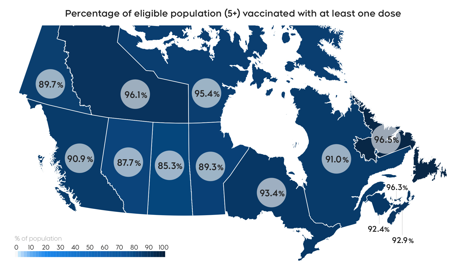 So far, 76.7% of the total population have one vaccine dose, 76.1% have two doses, and 59.2% have been boosted.