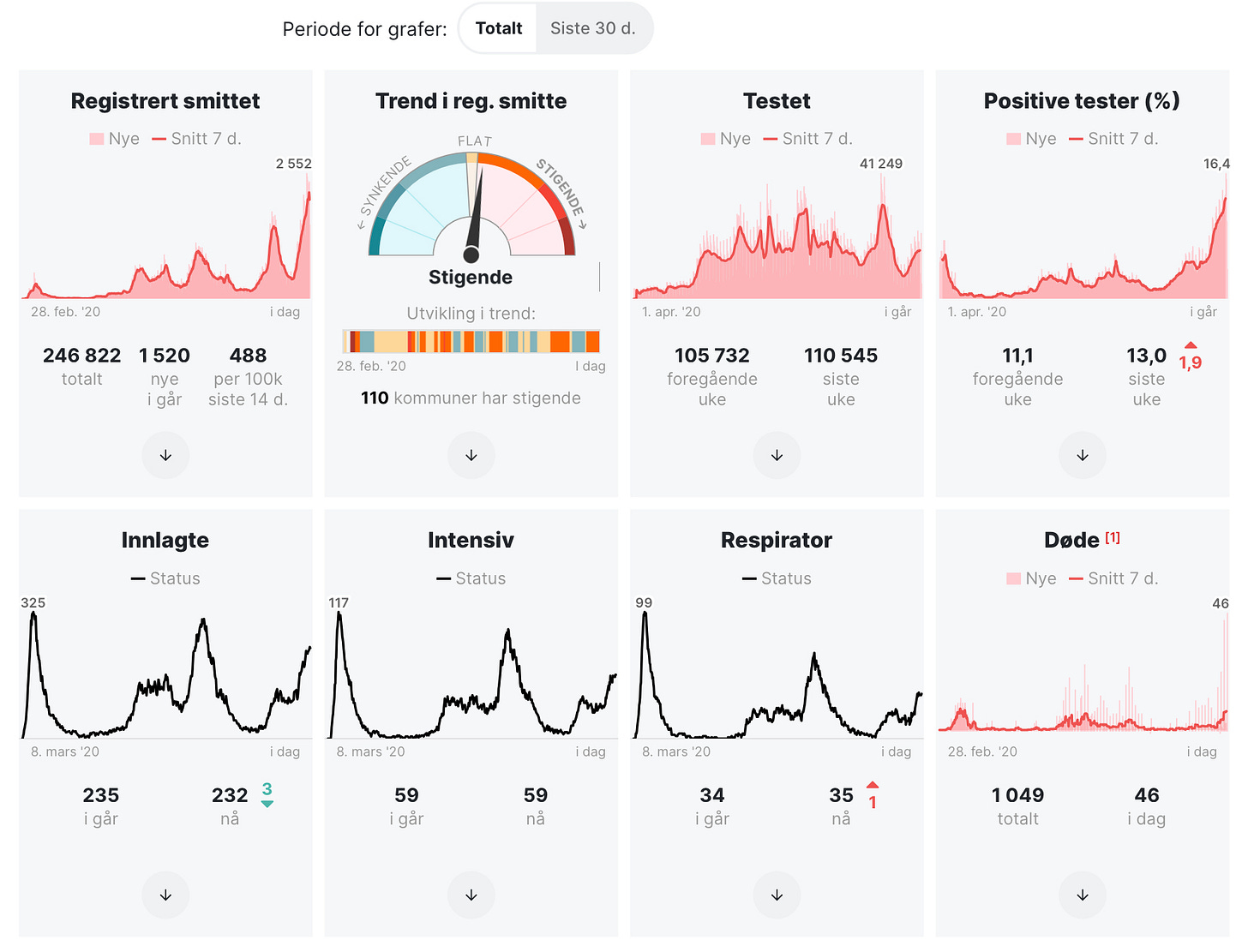 Norway added 1,520 infections and another 46 pandemic deaths since yesterdayâs update.