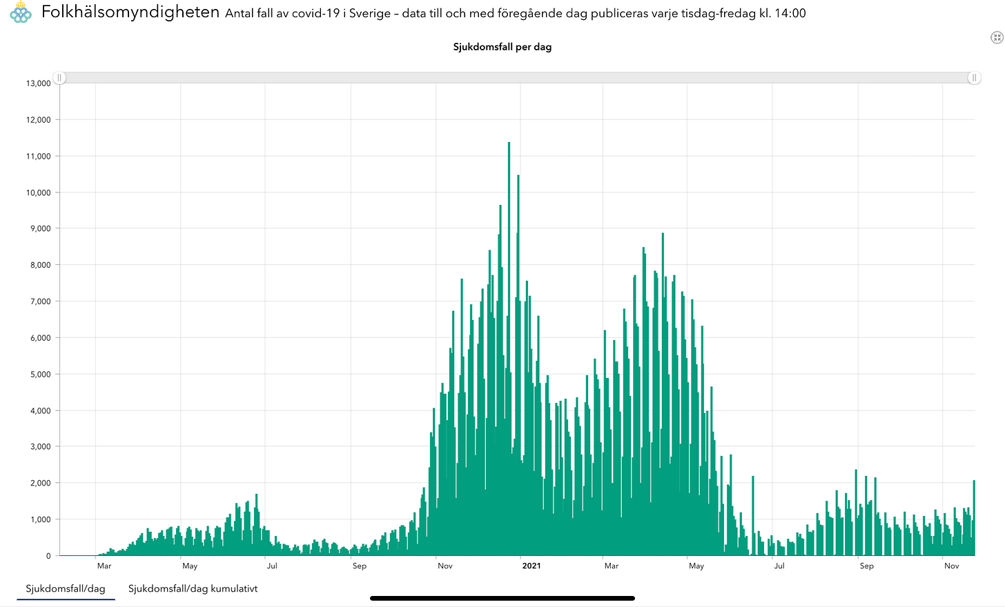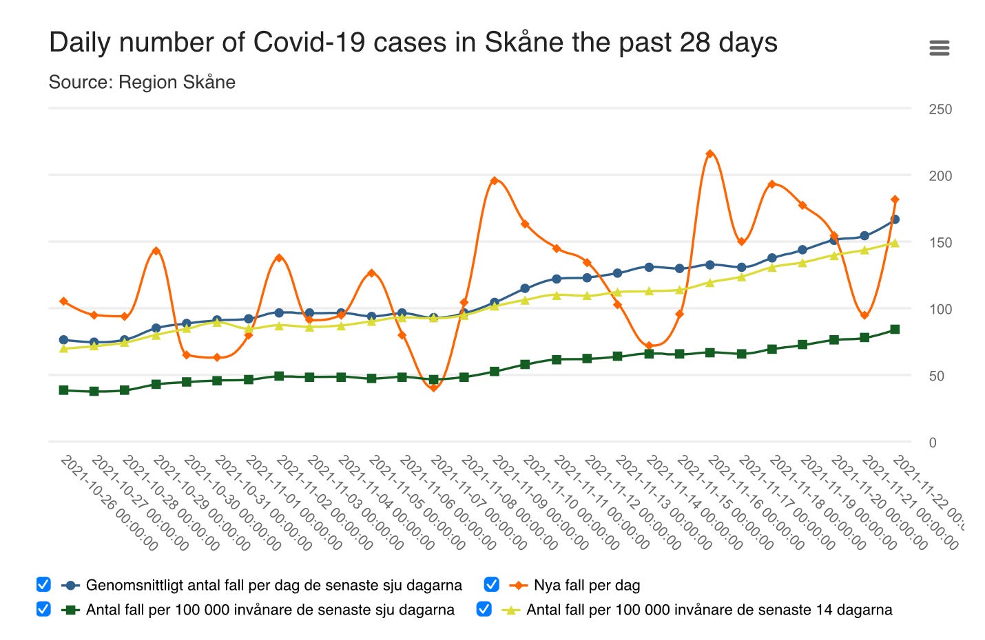 The region notes that it is seeing an uptick in the number of vaccinations likely triggered by the impending vaccine passport system set to arrive across Sweden on December 1.
