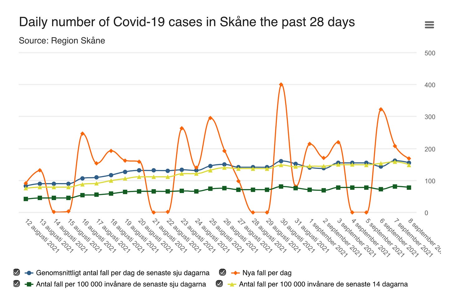 In Southern Sweden just across the bridge from Copenhagen, Region Skåne is seeing its latest infection wave begin to ebb.
