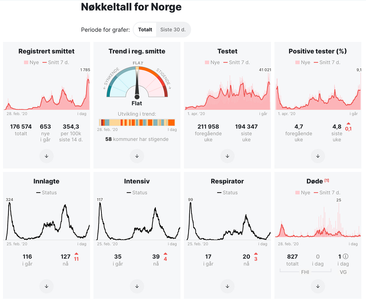 Norway has added 694 infections and had no new corona deaths in the last day.